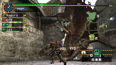 通常モンスターリスト完成しました。 現在全クエスト一覧をKYOさんが作成中です。 最近PSPネタが無いので2nd専念してます^^ それでは、今日の戦いを画像で紹介しますね ↓友達のMEBIUSUを手伝って緊急のシェンガオレン討伐を行いました!!遊びでいったんで武器は適当ですw ラストは全員で大砲打って討伐完了です! 因みにKYOさんの防具は、ミラルーツ一式です^^やばいね^^ ↓出ましたorzこいつ良すぎなんですよね。ラージャン君。 始まってすぐ友達が2回死しました。 ↓脱皮前のクシャルダオラです。簡単に討伐しました~ P.S 禍々しい布がまったく手に入りません…一体どうすればorz |